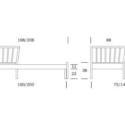 Runko 75×190: vuodekoko 140×190 cm ja vuodesohvan leveys 195 cm.
