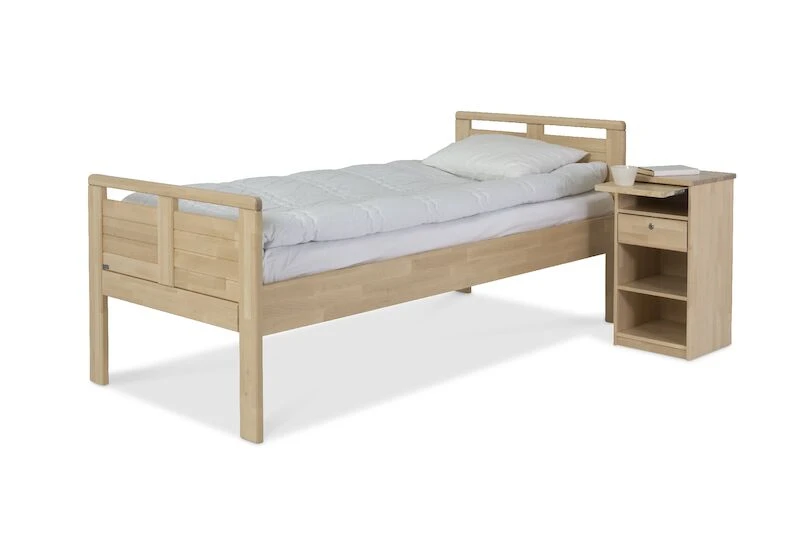 Seniori sänky on erityisestei senioreille tarkoitettu laadukas ja todella tukeva kotimainen koivusta valmistettu sänky. Sängyn korkeus on normaalia korkeampi, korkeus sängyn sivun yläreunaan on 49 cm. Istuinkorkeus 16 cm paksun patjan kanssa on 55 cm. Tämän vuoksi sängystä on helppo nousta ylös. Sängyn leveys 87/97 cm. Saatavissa vanhuksen arkea helpottavia upeita lisävarusteita. Patjakoko valittavissa useista eri vaihtoehdoista.