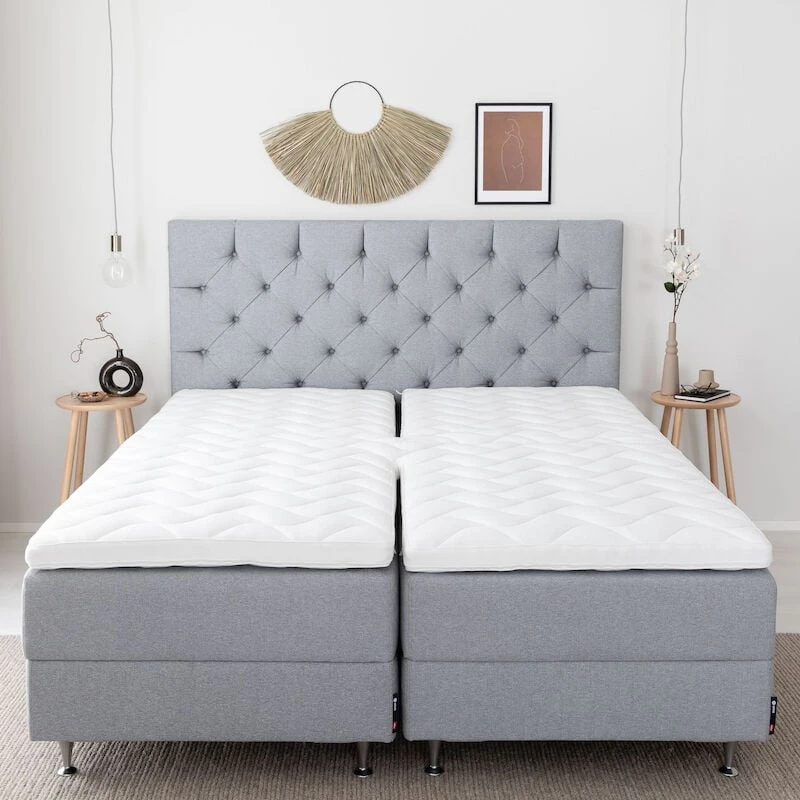 Parimoottorisängyn petauspatja, jossa kaksi petauspatjaa ovat kiinni toisissaan pitkän sivun keskeltä. Patjoja ei saa irti toisistaan. Todella kätevä petauspatja mootorisängyille – patjat pysyvät tiiviisti lähekkäin estämättä kuitenkaan moottorisängyn päätyjen säätöä eri korkeuteen.