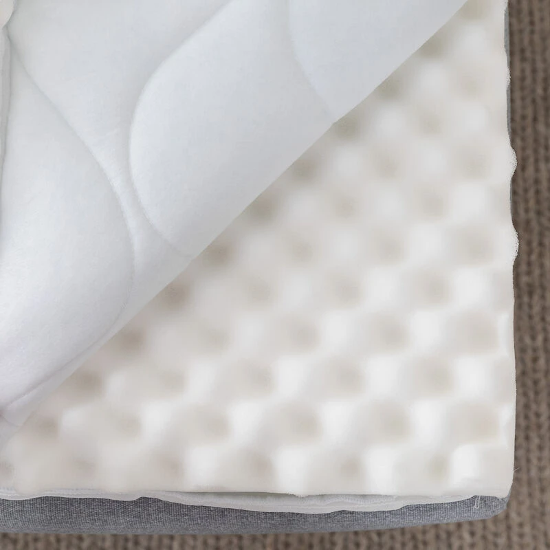 Stylex profiloitu vaahtomuovi on kimmoisa, joustava ja kestävä materiaali. Petauspatjan päällinen on irroitettavissa ja pestävissä 40° vesipesussa. Päällinen on laadukasta ja miellyttävän tuntoista valkoista joustokangasta.