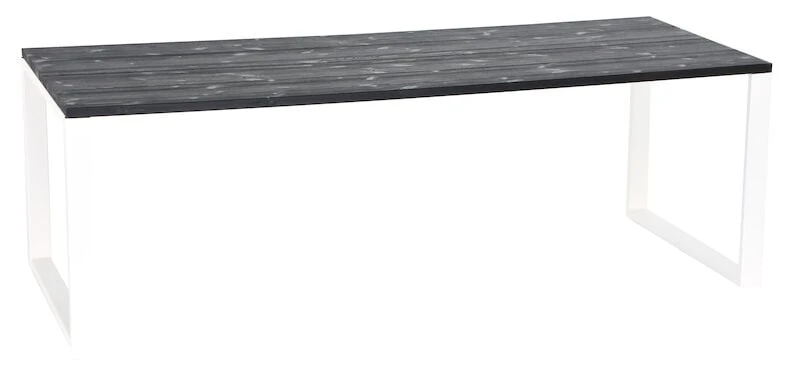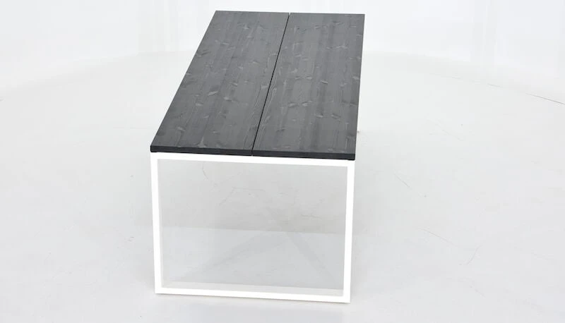 Pöydän kansi on tehty kahdesta leveästä liimapuulankusta, jonka liimauksessa on käytetty vedenkestävää liimaa. Jalat ovat vankkaa jauhelakattua metallia, jotka voidaan asentaan kahteen eri kohtaan, joko päätyyn tai sisemmäksi.